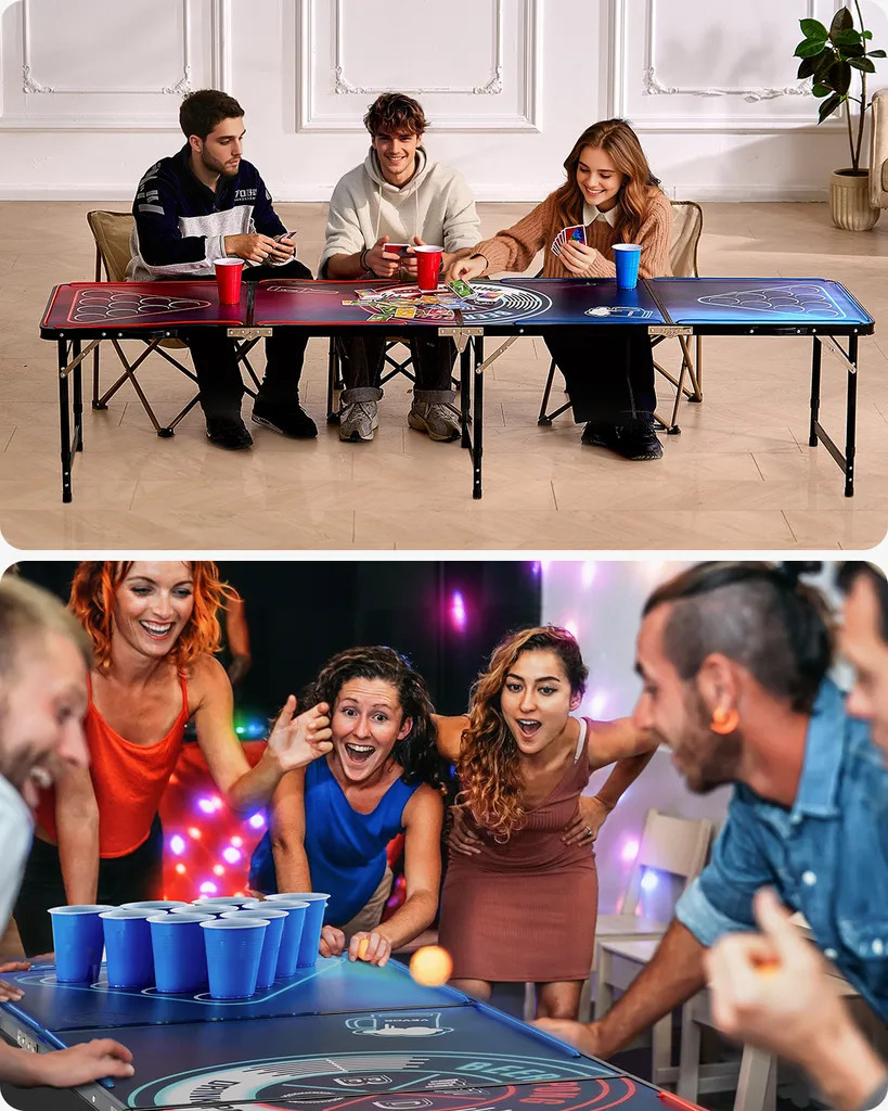 S týmto stolom sa na žiadnej párty nebudete nudiť. Zábava pre malých aj veľkých. Nemusí ísť iba o klasickú alko verziu, ako ju poznáme z americh filmov. Pri tomto stole sa zabavia aj vaše deti. Počas horúcich letných dní môžete totiž zahrať alternatívu - kto trafí, ten oblieva. V dospeláckej verzii je princíp tie jednoduchý: keď sa trafíte do súperovho pohára, musí Váš náprotivok piť!