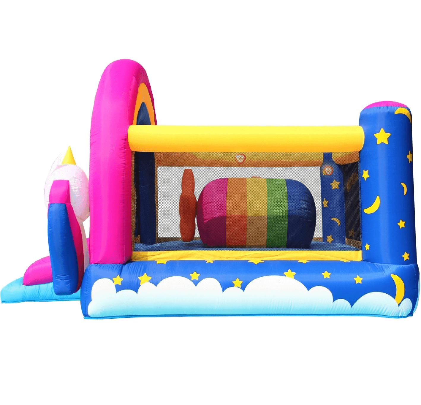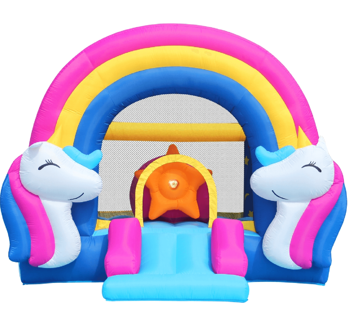 Skvelý interaktívny nafukovací skákací hrad v podarenom dizajne s jednorožcami.